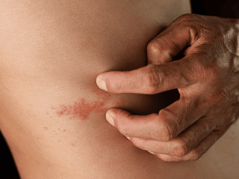 Shingles is a painful rash caused by reactivation of the chickenpox virus (varicella zoster). It usually affects one side of the body or face.